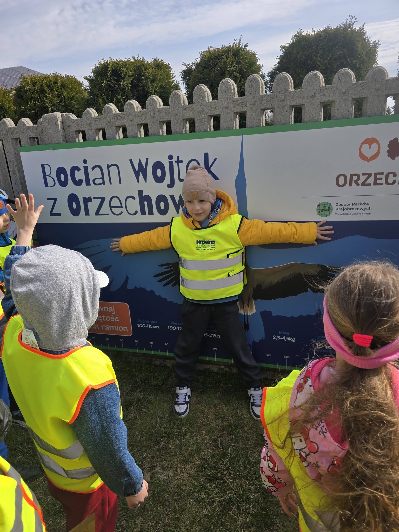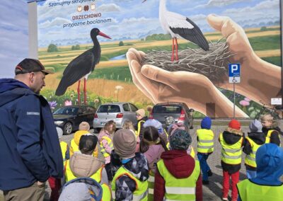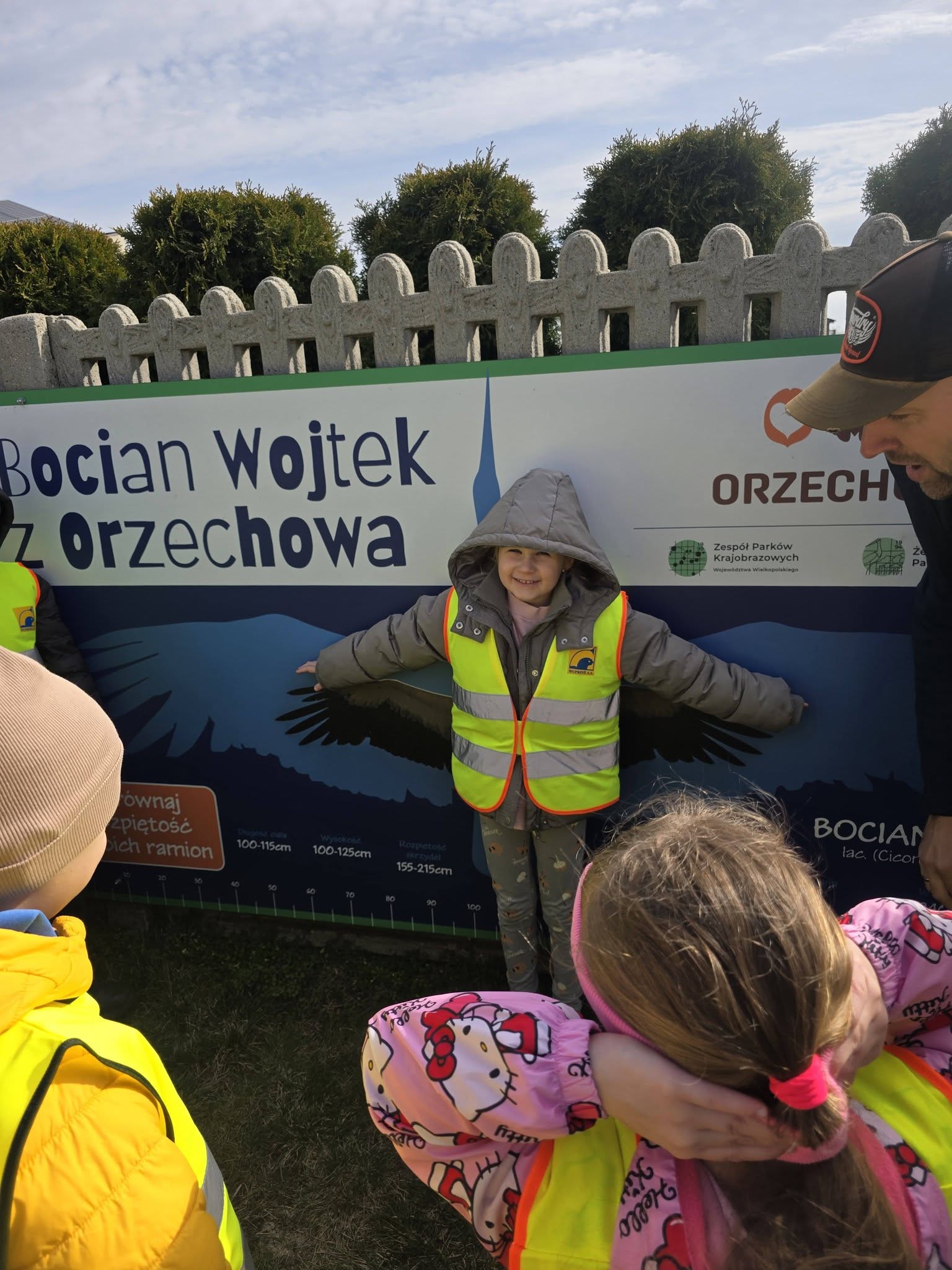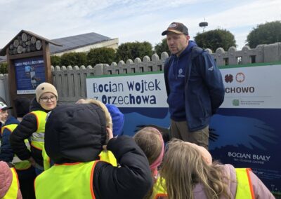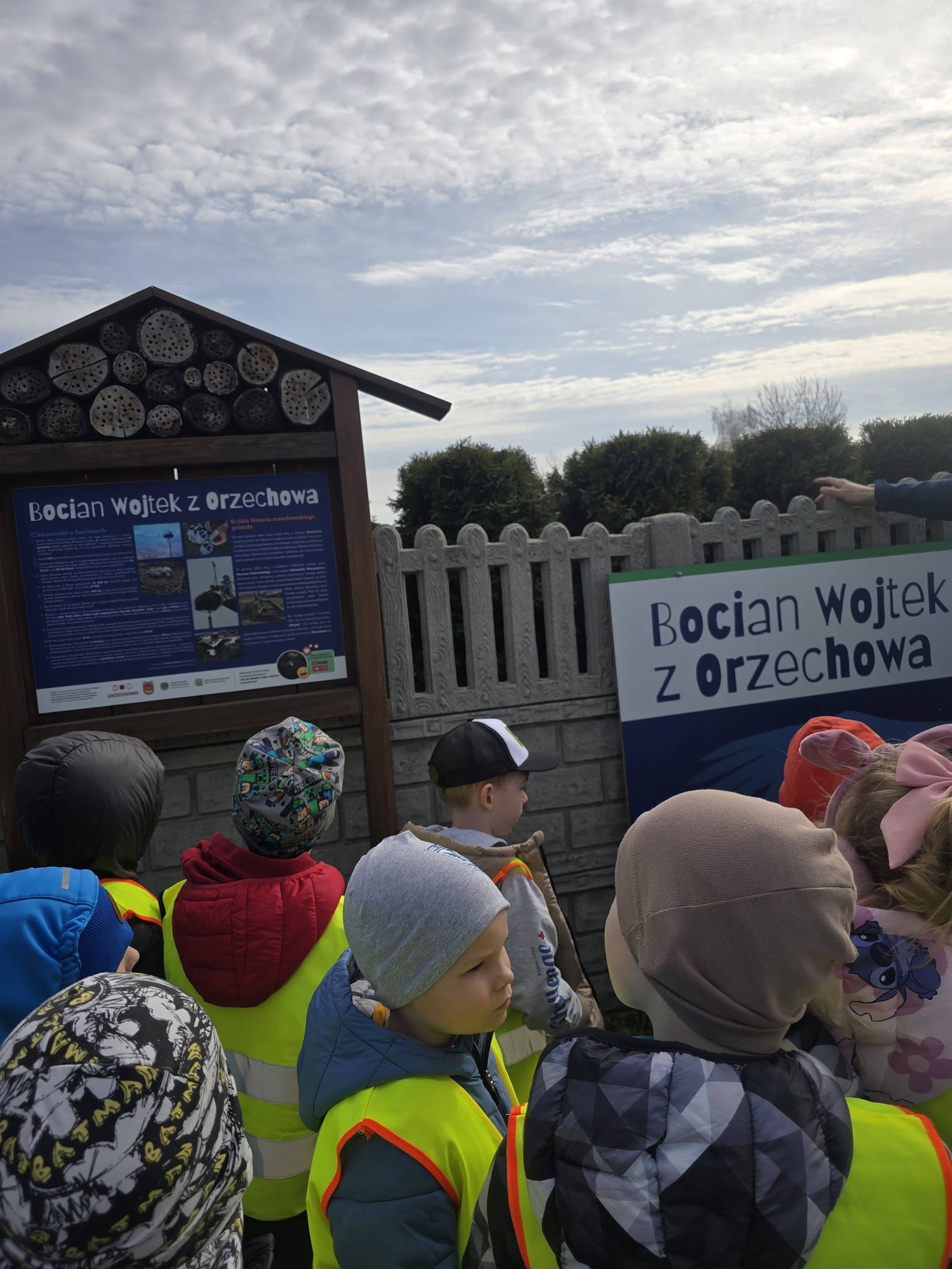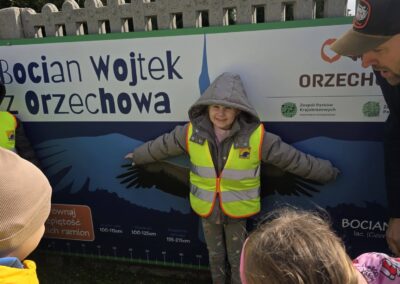 Natomiast dnia 25.03.2026 r. w odbyły się trzecie warsztaty ekologiczne z projektu pt.„Przyrodę kochamy i Bociana Wojtka poznamy” wyruszyliśmy z sześciolatkami na przyrodniczy spacer. Prowadzący spotkanie Aleksander Warczygłowa Sołtys Orzechowa, a zarazem ambasador parków krajobrazowych województwa wielkopolskiego i wielki miłośnik bociana białego opowiedział nam wiele ciekawostek o obrączkowaniu naszych bocianów oraz ich życiu.