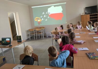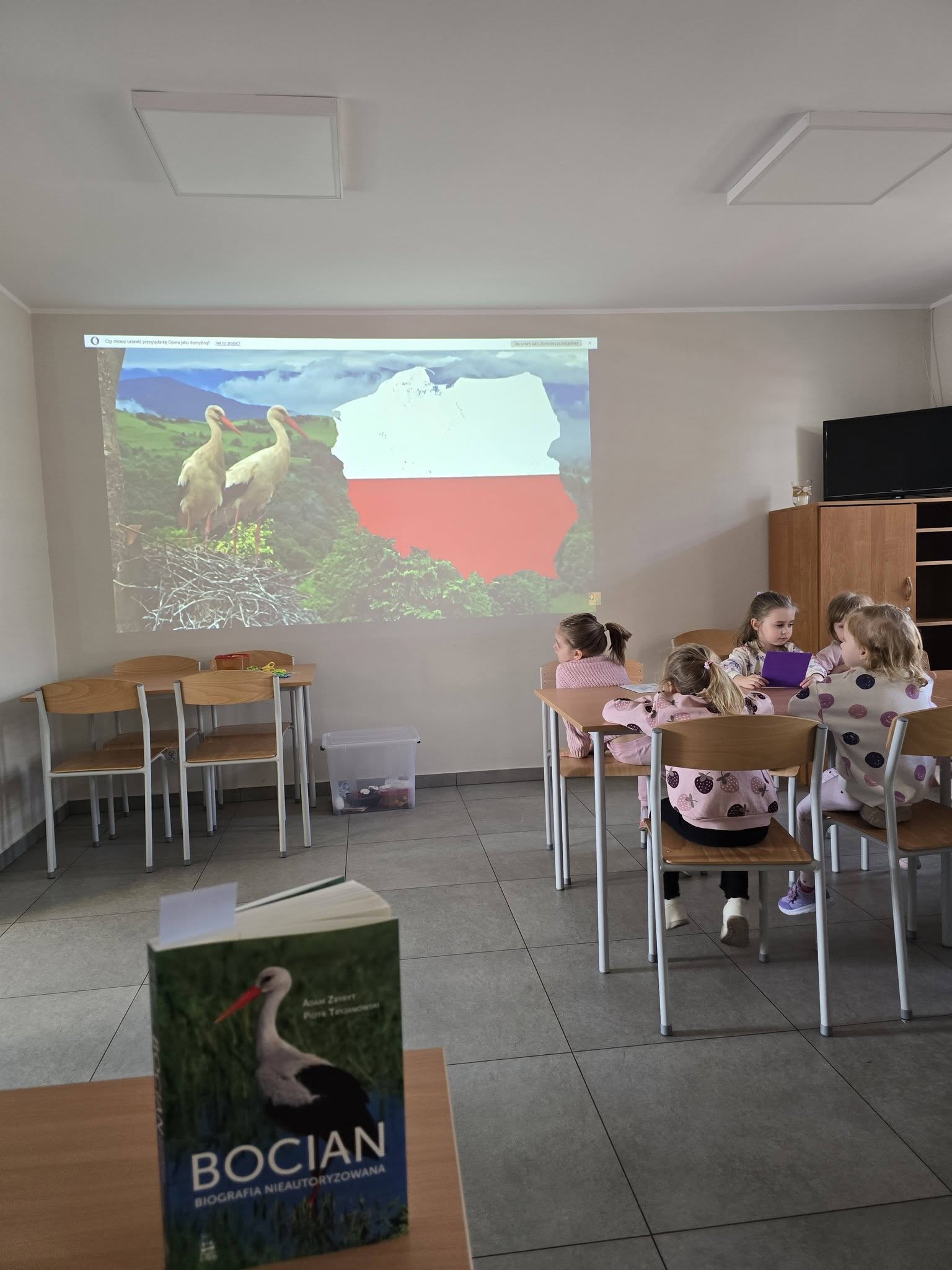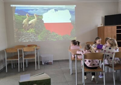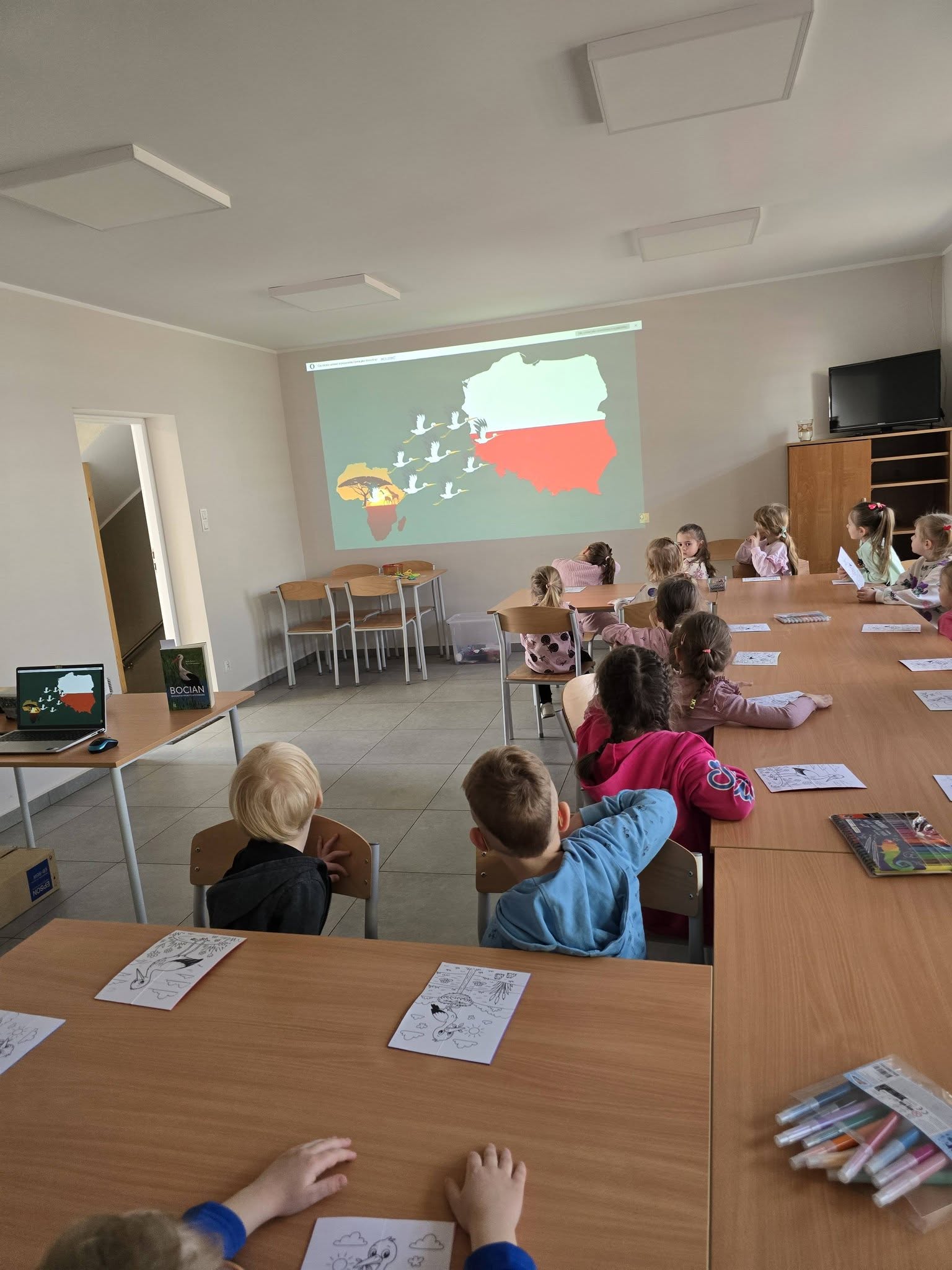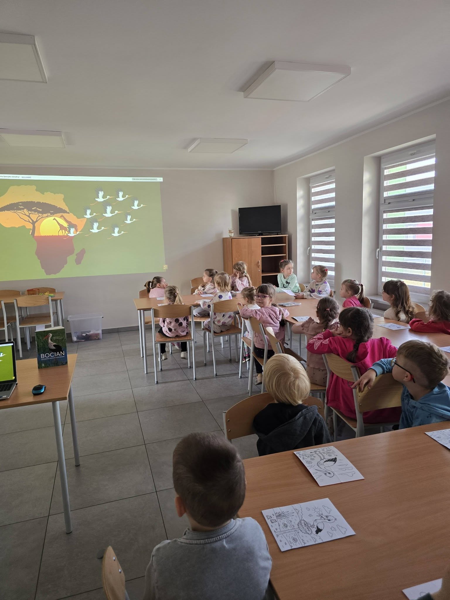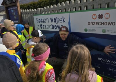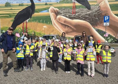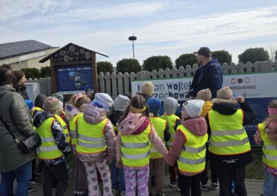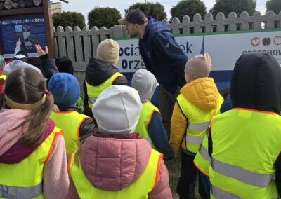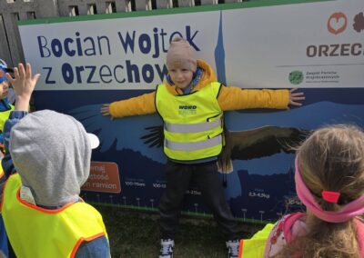 Natomiast dnia 25.03.2026 r. w odbyły się trzecie warsztaty ekologiczne z projektu pt.„Przyrodę kochamy i Bociana Wojtka poznamy” wyruszyliśmy z sześciolatkami na przyrodniczy spacer. Prowadzący spotkanie Aleksander Warczygłowa Sołtys Orzechowa, a zarazem ambasador parków krajobrazowych województwa wielkopolskiego i wielki miłośnik bociana białego opowiedział nam wiele ciekawostek o obrączkowaniu naszych bocianów oraz ich życiu.