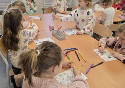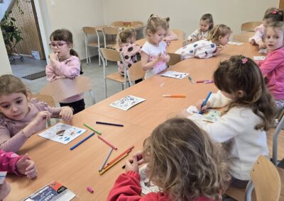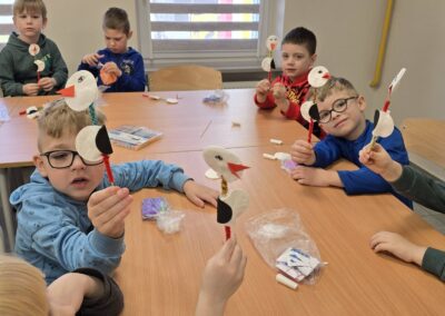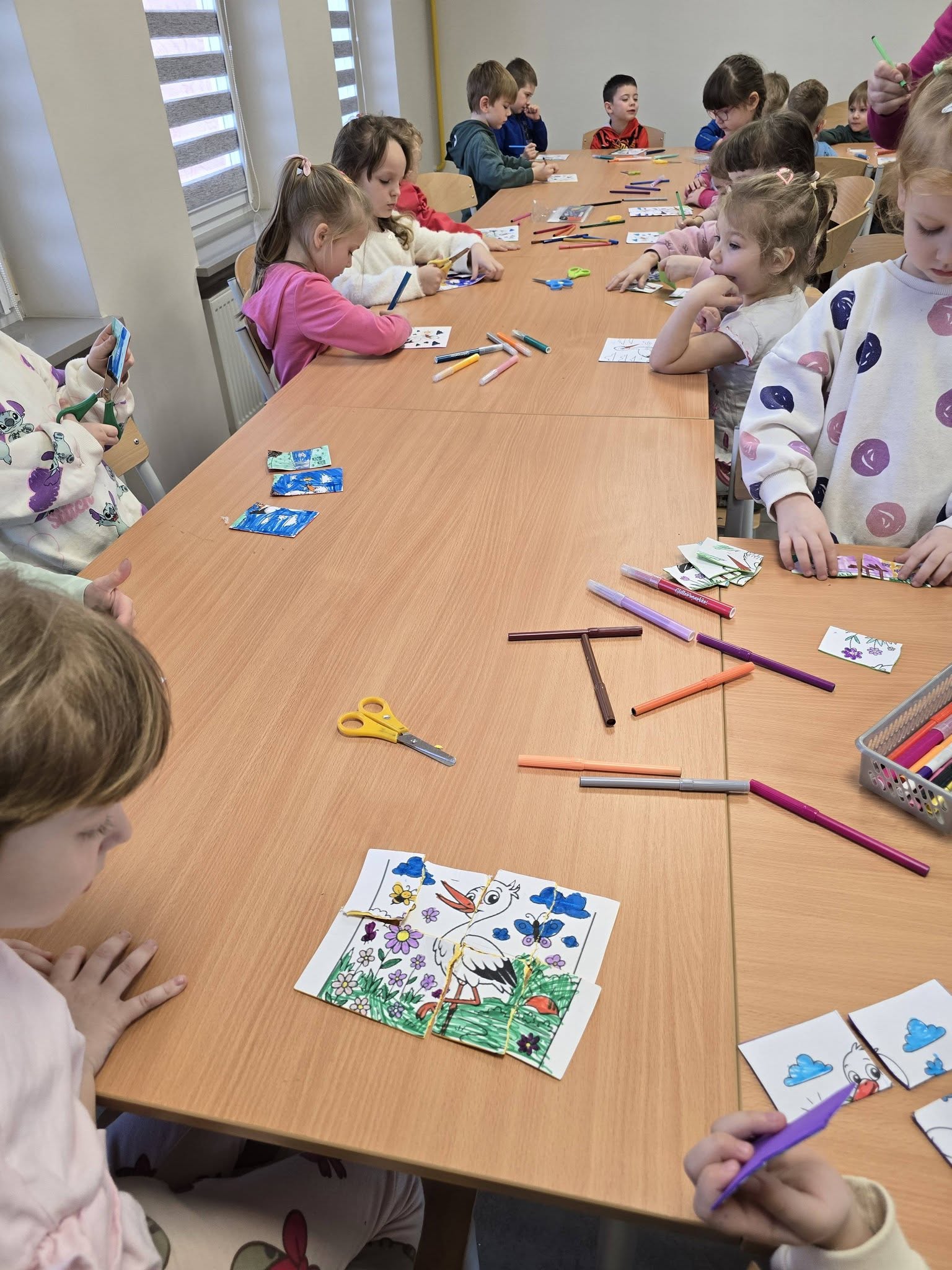 Na warsztatach pt. „Bociana poznajemy i artystami się stajemy” dzieci z Przedszkola Bajkowy Świat w Orzechowie wysłuchały fragmentu książki pt. „Bocian biografia nieautoryzowana” – Adam Zbyryt, Piotr Tryjanowski . Następnie oglądały krótki film przyrodniczy o bocianie białym. Na warsztatach plastycznych pięciolatki zrobiły Bociana oraz pomalowały bocianowe puzzle.